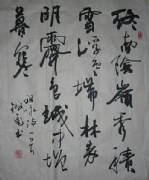 董树进,字墨言,墨痴斋主人。1960年生,北京市人。现为北京市书法协会会员,北京神州博古书画院副秘书长、专业书法家,中国老年书画研究会创研员,现代管理大学书画艺术研究院特邀研究员。毕业于中国人民大学。自幼酷爱书法,从学校到部队进企业,几十年耕砚不辍,潜心研习,多年来对,张迁碑、乙瑛碑,王羲之《兰亭序》、米芾《蜀素帖》等古代碑帖反复进行临习和研究,并受益于书法名家的指导,作品主攻隶书、行草。追求典雅、清...(详细介绍)